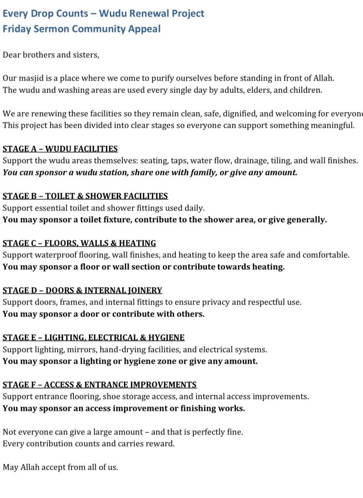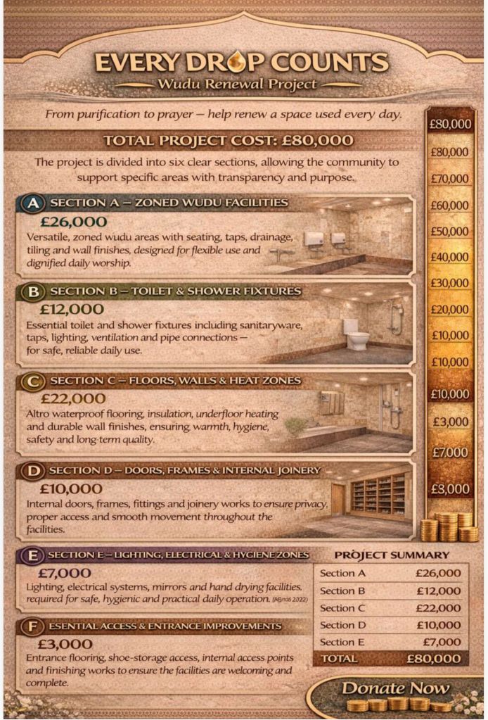 We humbly request your du’as, financial and physical support to allow the building work to go ahead. Work will include: